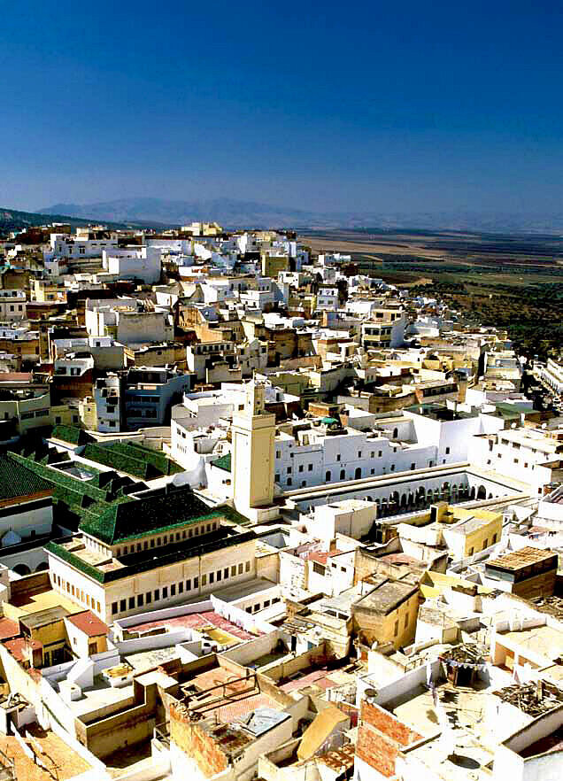 Ungefähr zwanzig Kilometer nördlich von Meknes, auf dem felsigen Berggipfel, der sich über dem Tal des Oued Erroumane und der Ebene der antiken römischen Stadt Volubilis erhebt, beherbergt das ruhige Städtchen Moulay Idriss das Mausoleum des Begründers der Idrissiden-Dynastie. Dieser Mann, der aus Arabien kam, um die heimischen Berbervölker zum Islam zu bekehren, zieht Jahr für Jahr im August tausende Pilger an.